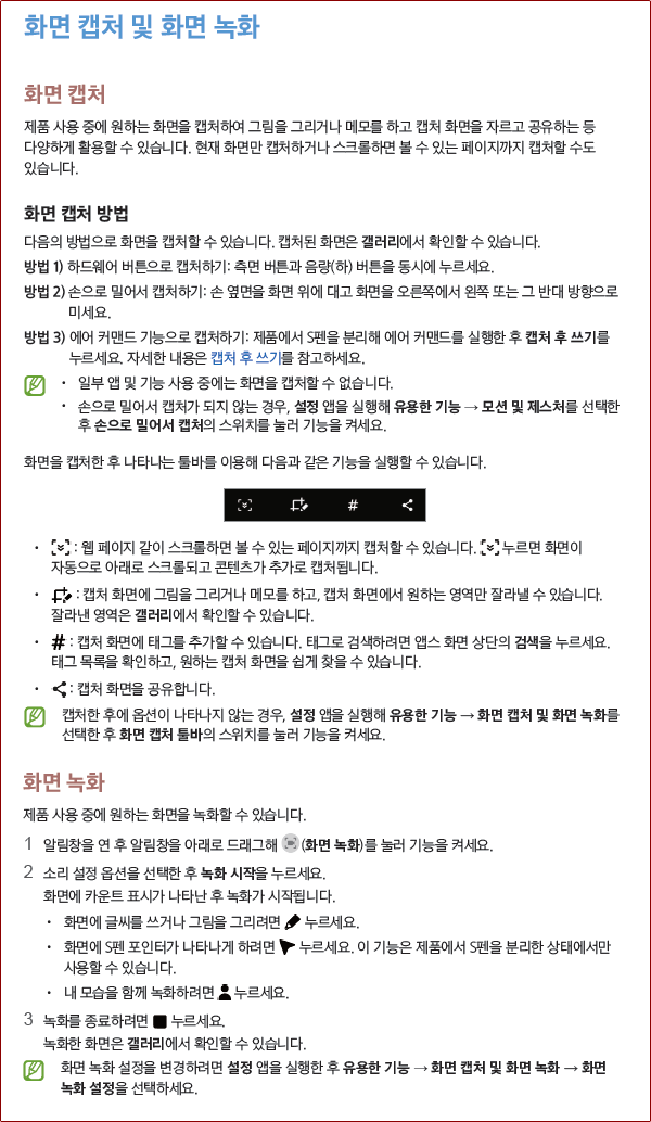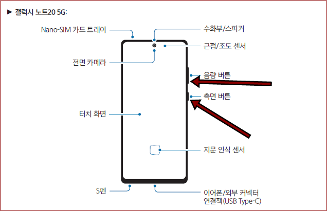 갤럭시S20시리즈, 갤럭시노트20 울트라 기종도 캡처 방법은 동일합니다.