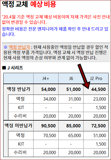 갤럭시J2 Pro기기의 액정 교체 수리비는